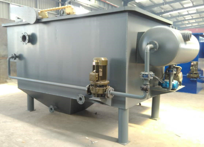該氣浮機運用了國外先進的污水處理工藝,設計合理,操作方便、運行經濟,它由空氣產生氣泡,直接從廢水中除去固體懸浮物、油脂、膠狀物等雜質。渦凹氣浮機將“微氣泡”直接注入污水中而不需要事先進行溶氣,然后通過散氣葉輪把“微氣泡”均勻的分布于污水中,所以整個運行過程不會發(fā)生阻塞現(xiàn)象。渦凹氣浮機主要由箱體、曝氣機、刮泥系統(tǒng)等組成,不需要壓力溶氣、空壓機和循環(huán)泵等設備。
